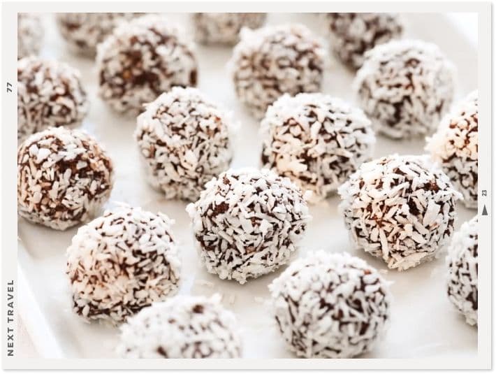 一口サイズの可愛いチョコレートボール。仕上げにココナッツがまぶしてあるので、ココスボール(Kokosboll)と呼ばれることもあります。 火を使わないお菓子であるため、スウェーデンの子供達が簡単に作れるとして人気です。たっぷりのオートミールとバター・カカオなどをよく混ぜ丸めたら、最後にココナッツをまぶします。