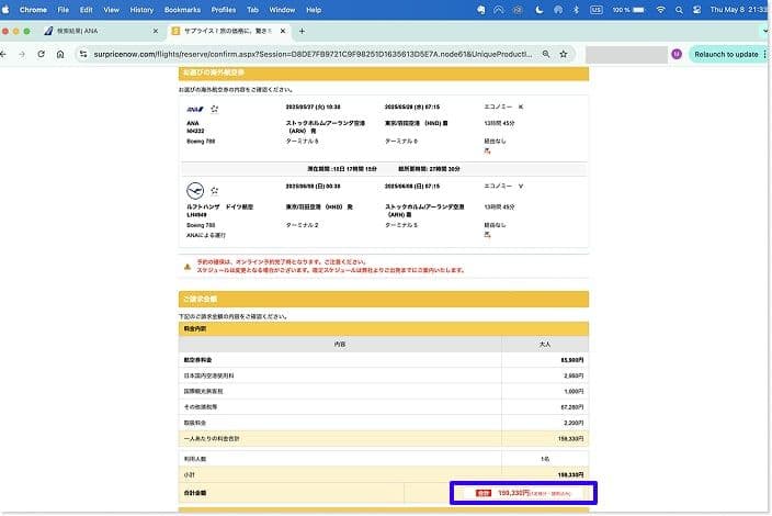 私は以前は航空会社から直接航空券を購入していたのですが、数万円安くなるという事実を知ってから、サプライスで予約するようになりました。
