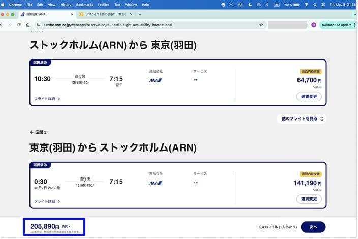 例えば私のスウェーデンでの往復便は行きのANAだと指定ができ、帰りのルフトハンザだと指定ができませんでした。